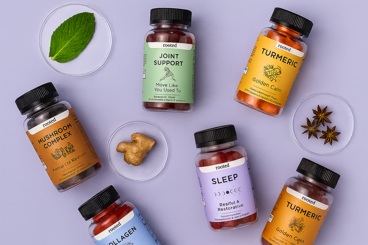 Rooted was created to give mothers simple, nourishing support that fits into real life. Using clean, targeted ingredients, our gummies help restore what motherhood takes most—your sleep, skin, joints, focus, and daily energy—so you can feel grounded, grow strong, and reclaim your vibrant self.